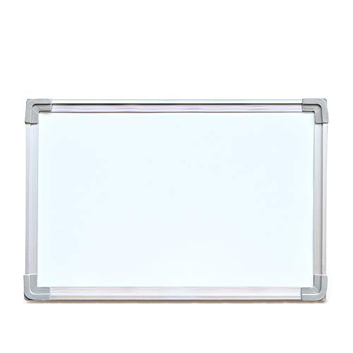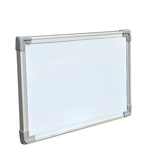 Specs: 60cm x 45cm (2ft x 1.5ft), aluminum frame with ABS corners, includes mounting hooks and accessory tray. Works with standard dry-erase markers and magnets.